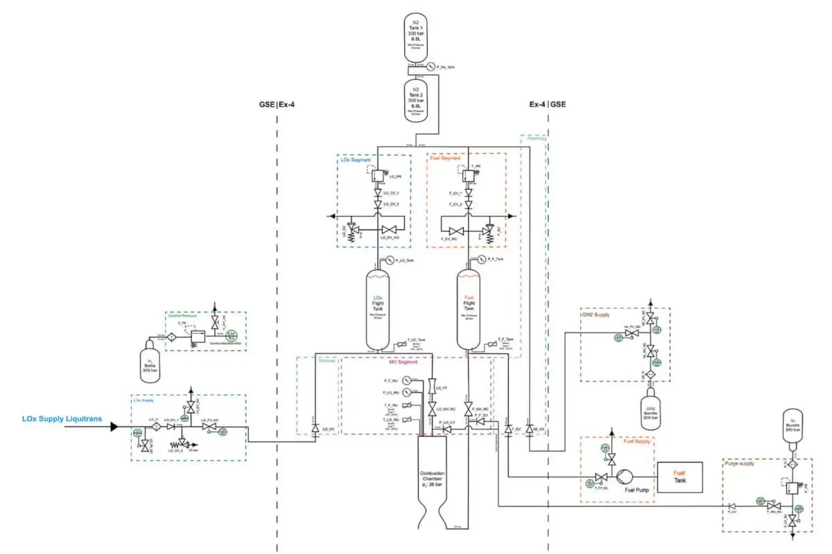 Silniki rozwijane przez zespół są zasilane etanolem jako paliwem oraz ciekłym tlenem (LOX) pełniącym rolę utleniacza. Oba media trafiają do jednostki napędowej za pośrednictwem zaawansowanego układu płynowego stanowiska badawczego. Zawory bezpieczeństwa GOETZE serii 492 zabezpieczają kluczowe elementy instalacji, w tym zbiorniki etanolu oraz ciekłego tlenu (LOX). Specjalna wersja GOX tej serii została zaprojektowana z myślą o pracy w środowisku wzbogaconym w tlen – zawór nie styka się bezpośrednio z ciekłym tlenem, lecz funkcjonuje w atmosferze tlenowej powstającej w wyniku parowania LOX nad lustrem cieczy w zbiorniku.